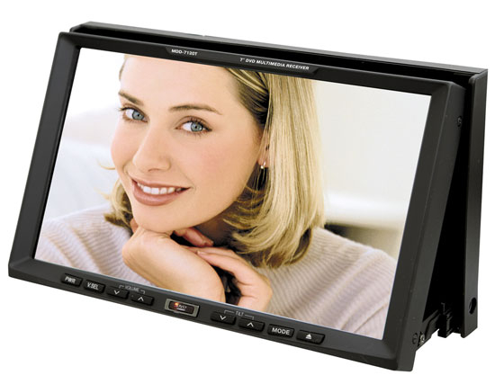 Автомобильный мультимедийный центр стандартного монтажного размера 2DIN со встроенным широкоформатным ЖК-дисплеем с диагональю 7” (178 мм) с сенсорной панелью управления с графическим интерфейсом . Системы цветности SECAM / PAL / NTSC, совместимость с форматами DVD, VCD, CD, MP3, WMA, JPEG, DivX. Мультимедийный центр имеет встроенный ТВ-тюнер, позволяющий принимать 30 каналов телевещания. Кроме этого, центр оснащен высокоскоростным цифровым PLL тюнером с памятью на 30 радиостанций (18 FM/УКВ, 12 AM), встроенным слотом для карт памяти SD/MMC и интерфейсом USB.