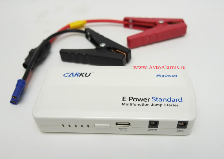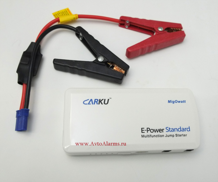 Пуско-зарядное устройство CARKU E-Power Standart представляет собой малогабаритный литиевый аккумулятор напряжением 12V и емкостью 15000 мАч с пусковым током 200-400А в пластиковом корпусе с зажимами типа "крокодил" для присоединения к подсевшему аккумулятору автомобиля и который сможет запустить двигатель объемом в 2-4 литра большое количество раз при окружающей температуре от -30 до +50С! <br>