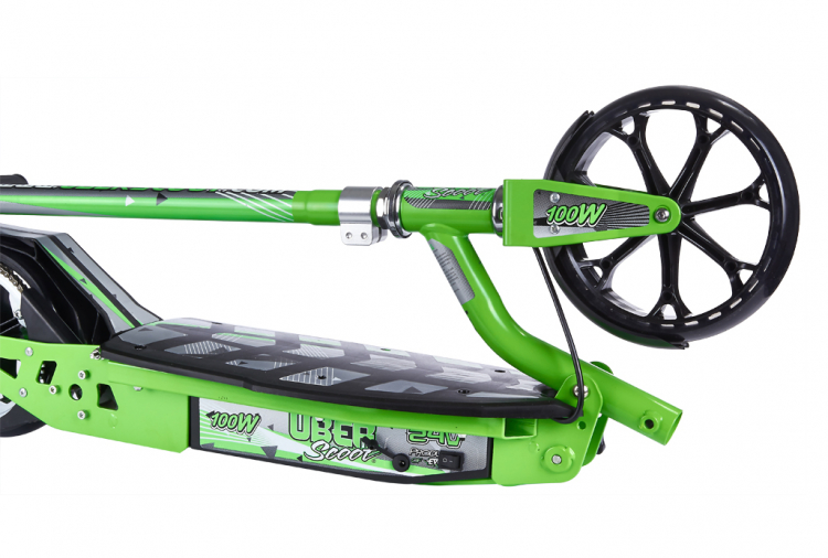 Детский электросамокат ELTRECO UBER 100W предназначен для детей от 8 лет и подростков, имеет электромотор заднего колеса 100Вт 24В, максимальную скорость 10 км/ч и пробег на расстояние до 10 км на горизонтальной поверхности, управление ручкой газа, тормоз ночной задний.<br>